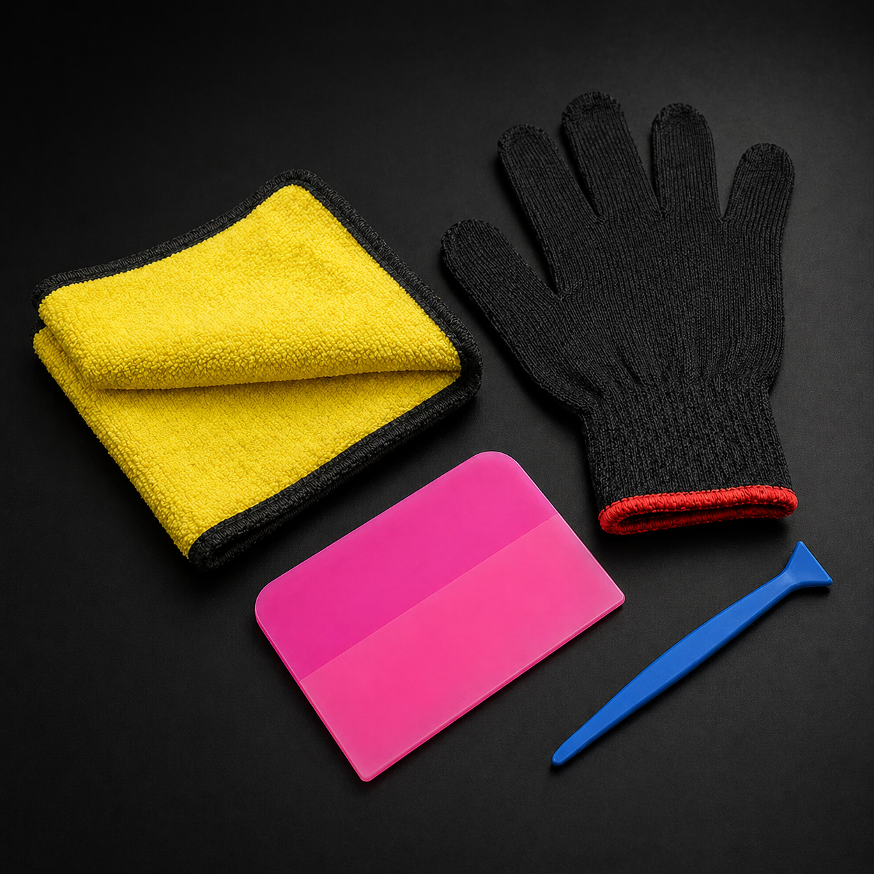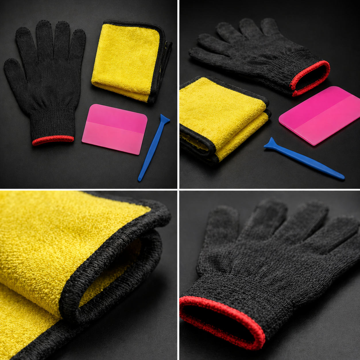 AutoDetox PPF Ragle Seti 4’lü – PPF Uygulama Aparatı, Esnek Ragle, Mikrofiber Bez, Eldiven